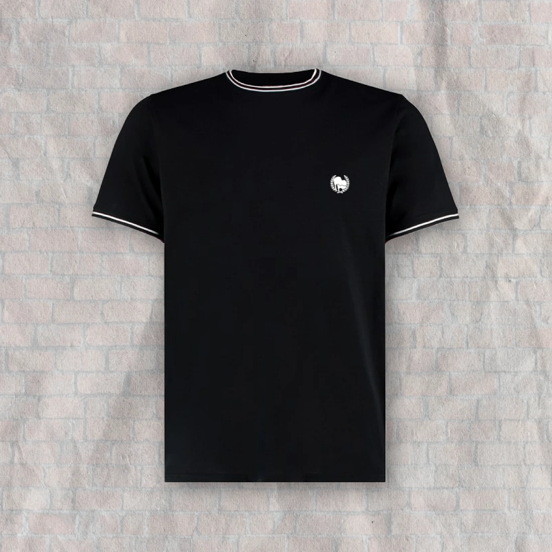Antifa Shirt – Schwarzes Shirt mit weissem Antifa Stick. Gestreifter Rippstrick an Hausausschnitt und Ärmelabschluss. Sportlicher Schnitt.
